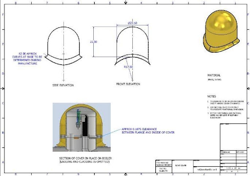 Fig1. Drawing for the dome cover manufacture. Fig2. A reminder of what they will look like when in position.
